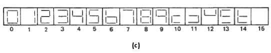 3.(a) Logic symbol for 7447 decoder IC (b) Function Table of 7447 decoder (c) Display produce for different combination of D,C,B,A inputs of 7447 decoder
