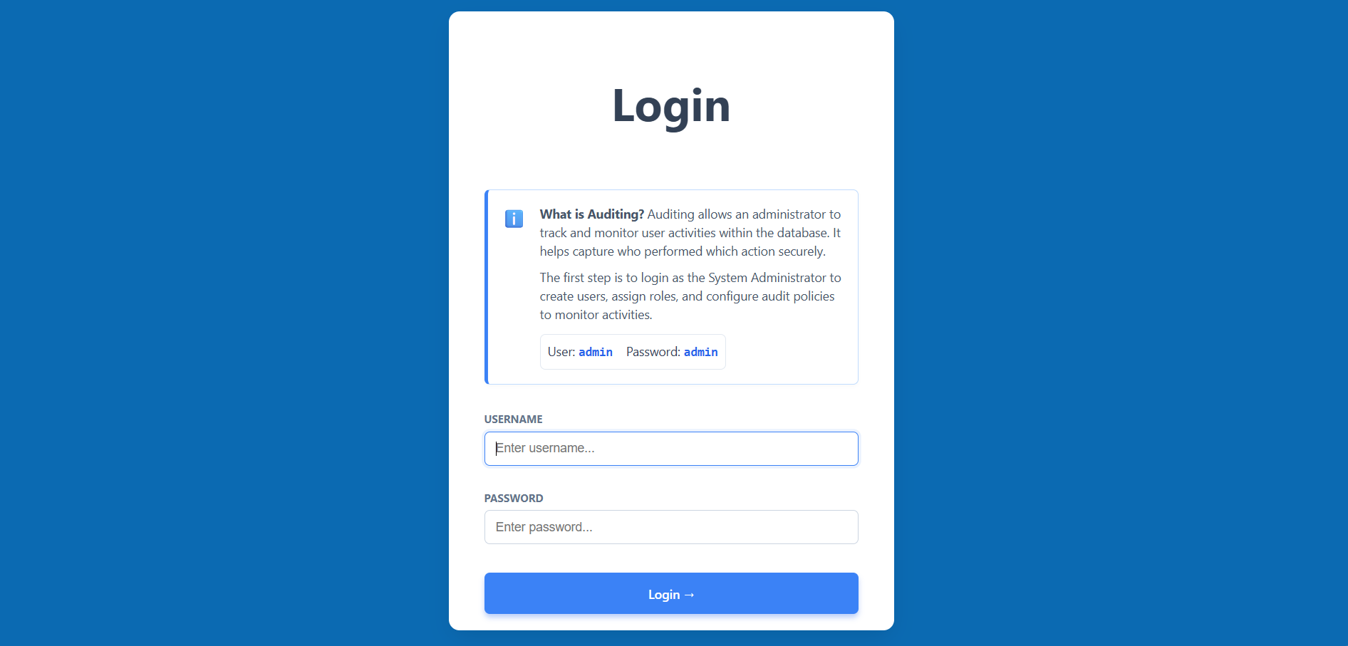 - Log back in as the Admin to access the auditing results.