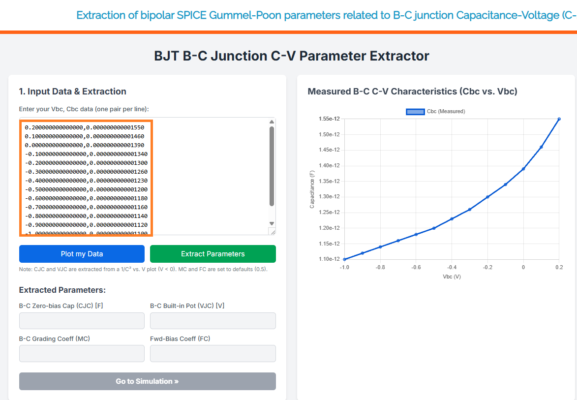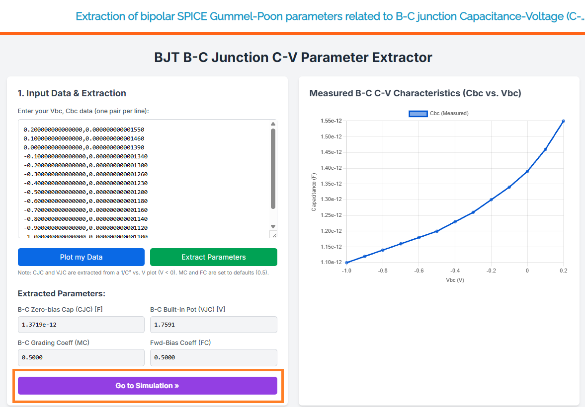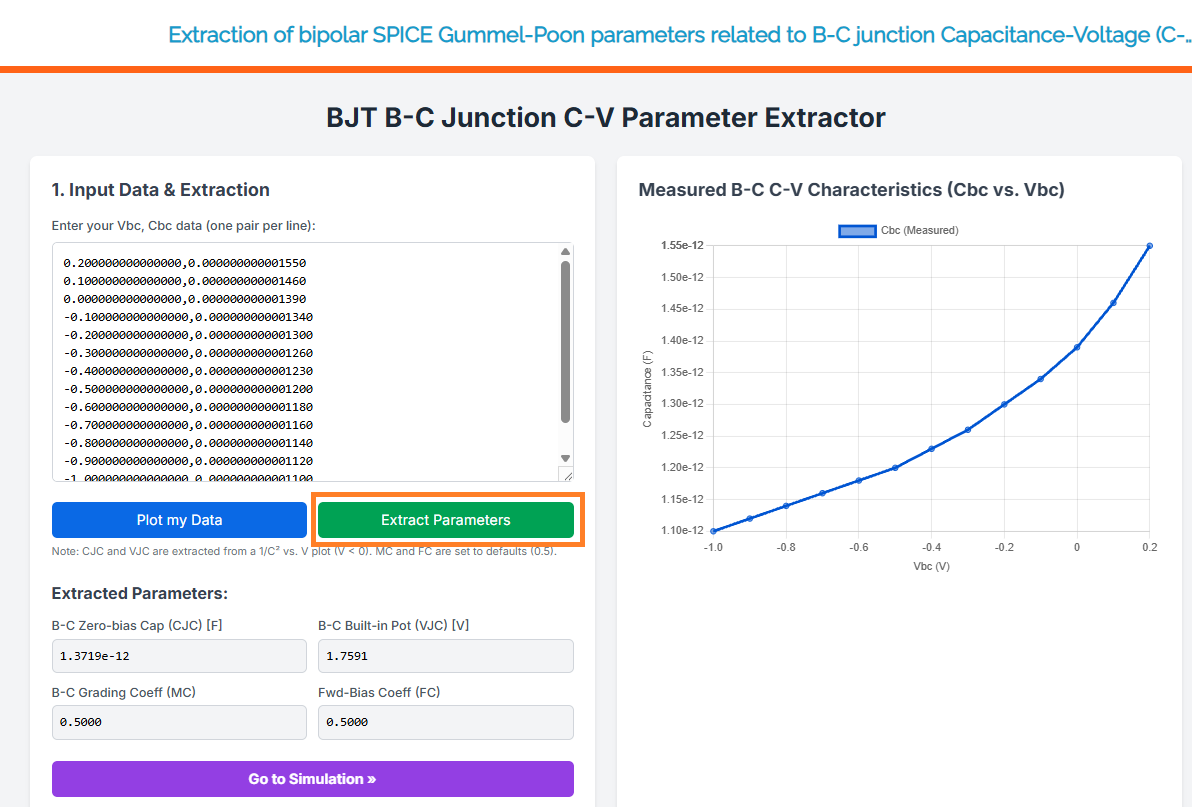 Extraction of bipolar SPICE Gummel-Poon parameters related to B-C junction Capacitance-Voltage (C-V)