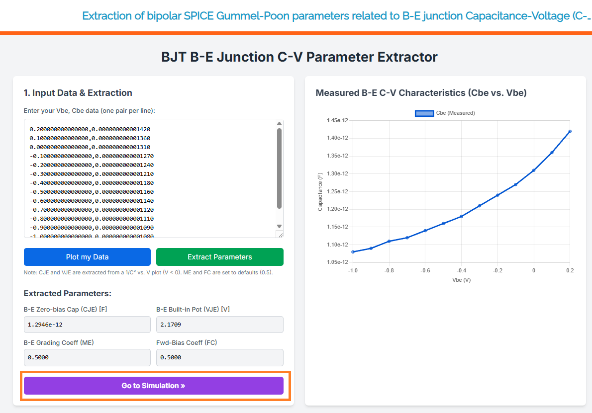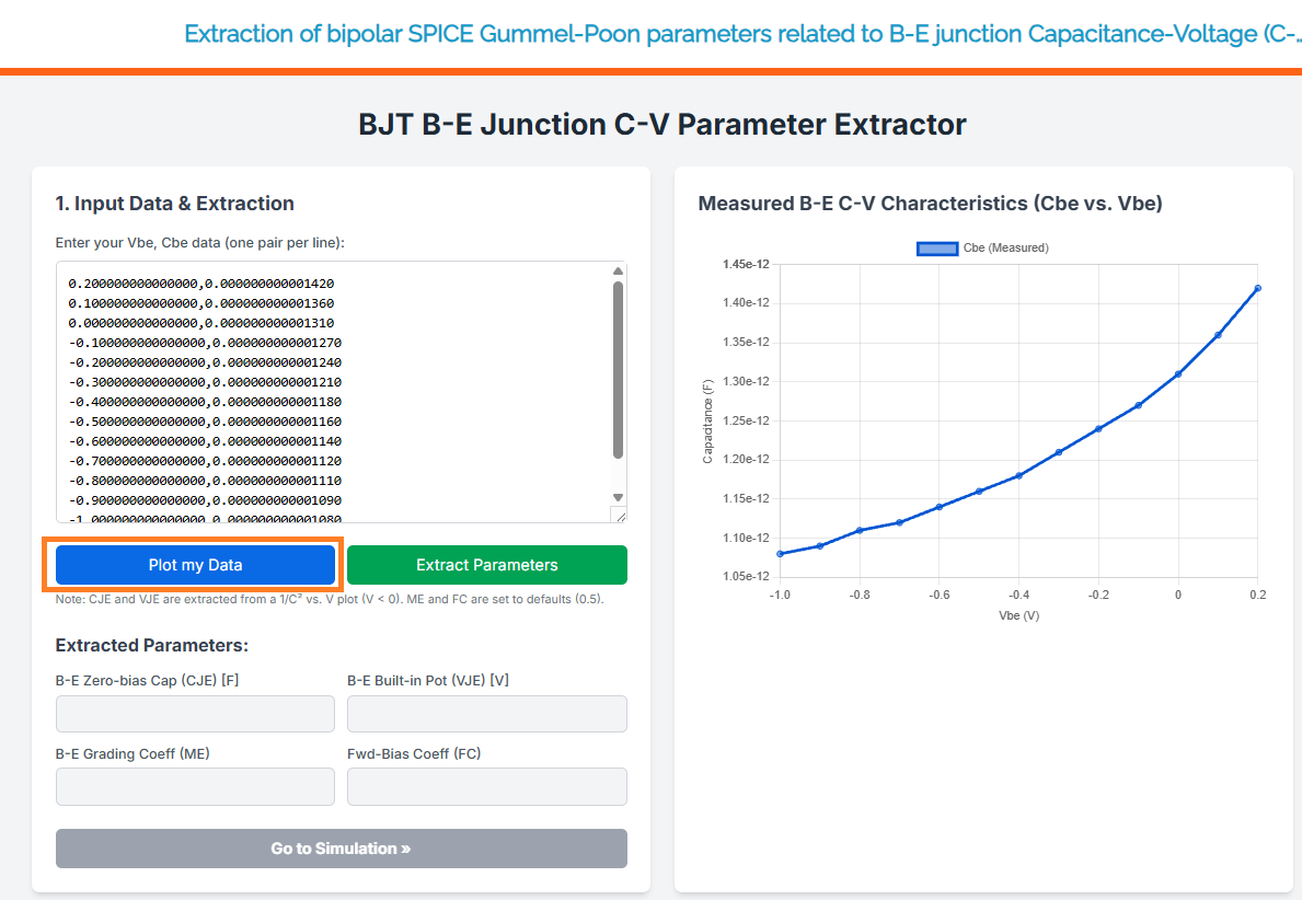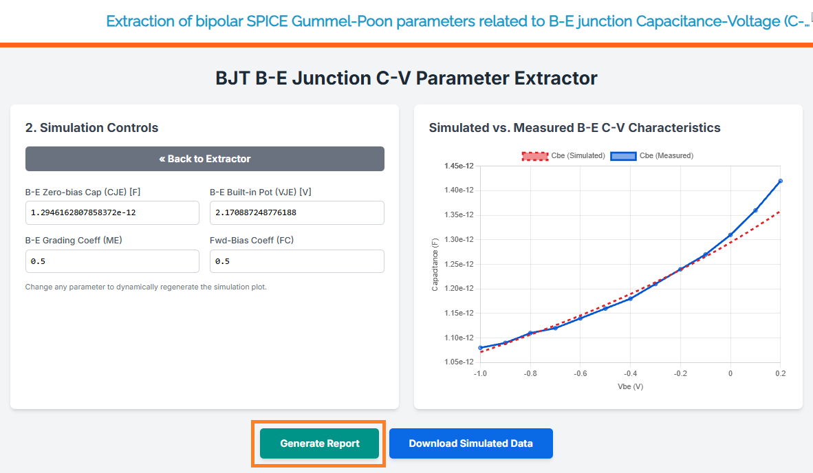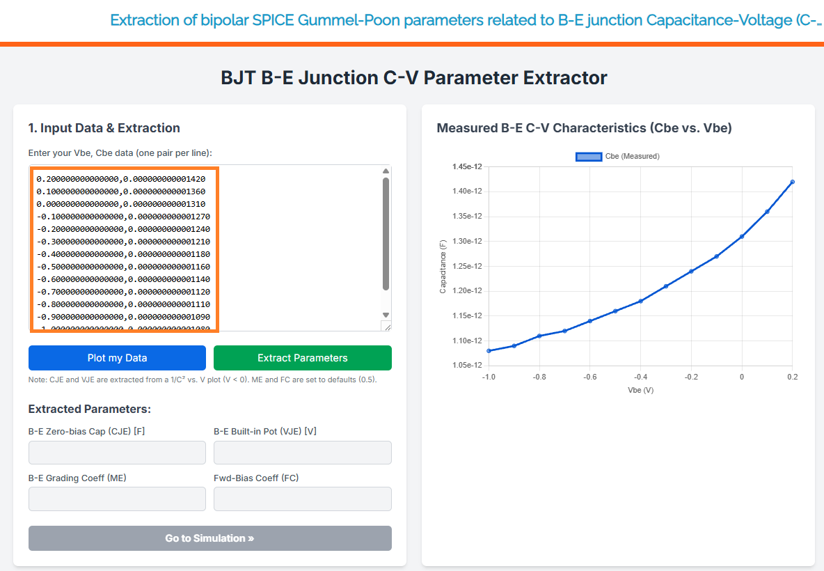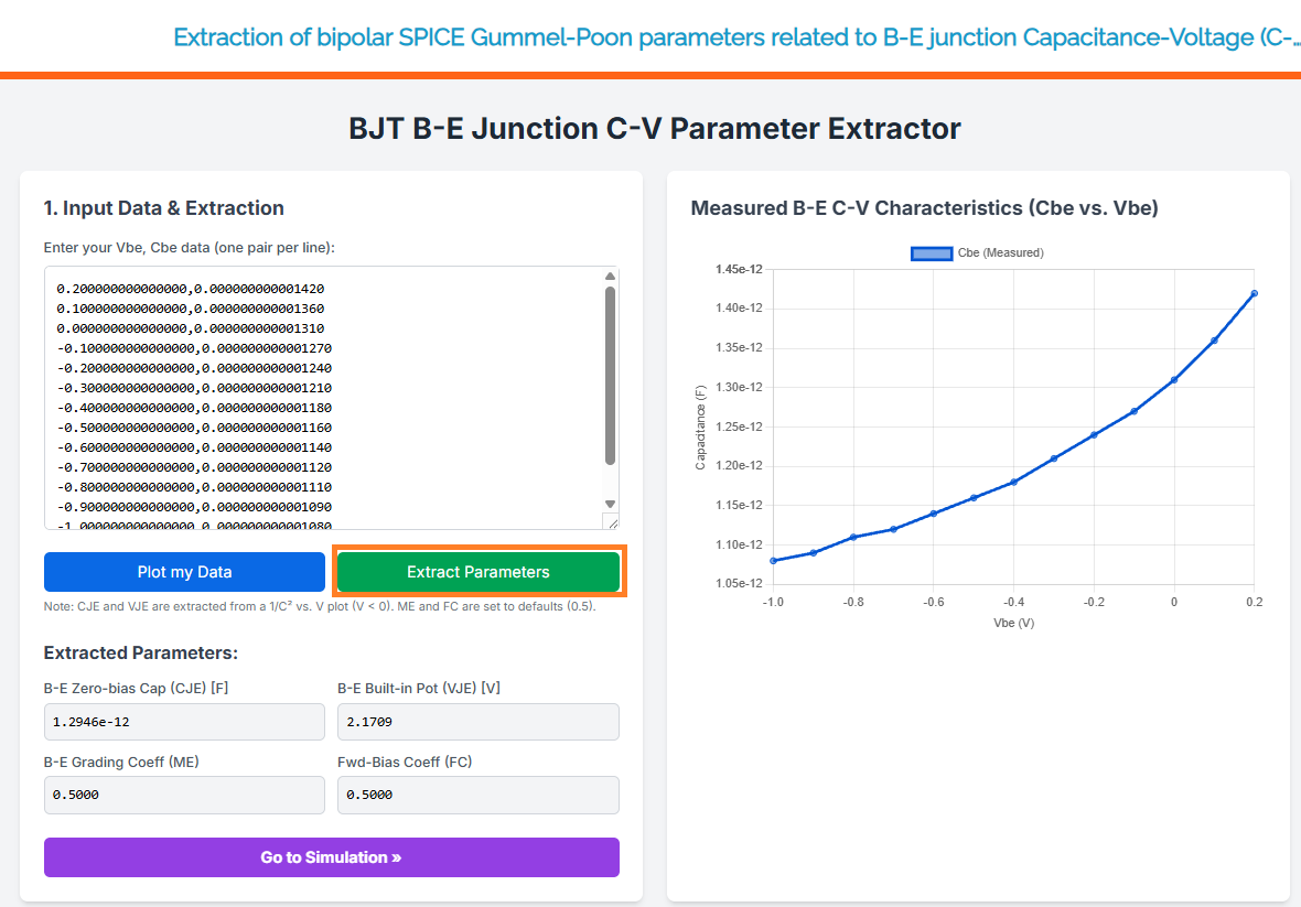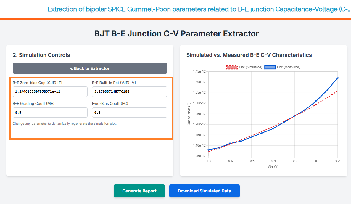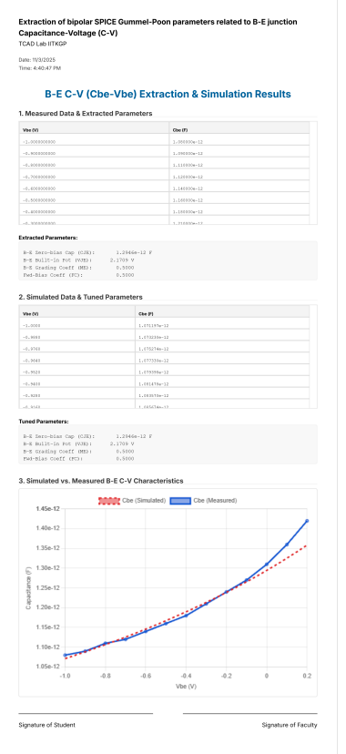Extraction of bipolar SPICE Gummel-Poon parameters related to B-E junction Capacitance-Voltage (C-V)