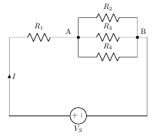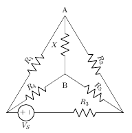 - Determine the value of R5 and current through it (IR5), if current through branch AB is zero and R1=1Ω,R2=1.5 Ω,R3=2Ω,R4=4Ω,VS=10 V. [Ans:R5=6Ω and IR5=0.5 A]