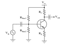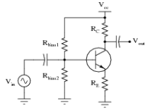 Determine what would happen to the voltage gain of a common-emitter transistor amplifier circuit. If the resistance Rbias1 is changed, then Av