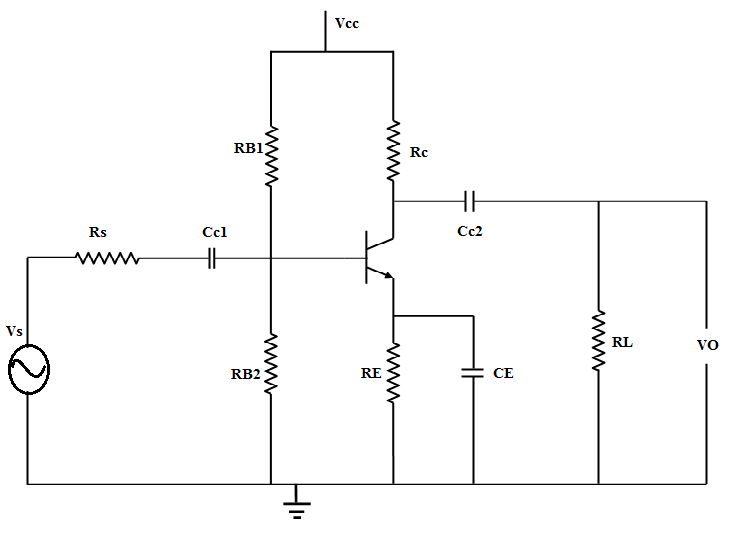 - Set Coupling Capacitor1(CC1)=10μF, Set Coupling Capacitor2(CC2) =10μF, Set Bypass Capacitance(CE)=10μF.