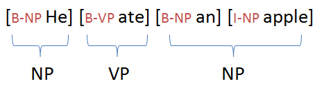 Each chunk has an open boundary and close boundary that delimit the word groups as a minimal non-recursive unit. This can be formally expressed by using IOB prefixes.