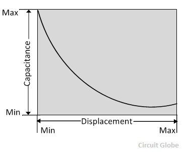 The capacitive transducers are used for measuring the large displacement approximately from 1 mm to several cm. The area of the capacitive transducer changes linearly with the capacitance and the displacement. Initially, the nonlinearity occurs in the system because of the edges. Otherwise, it gives the linear response. The capacitance of the parallel plates is given as