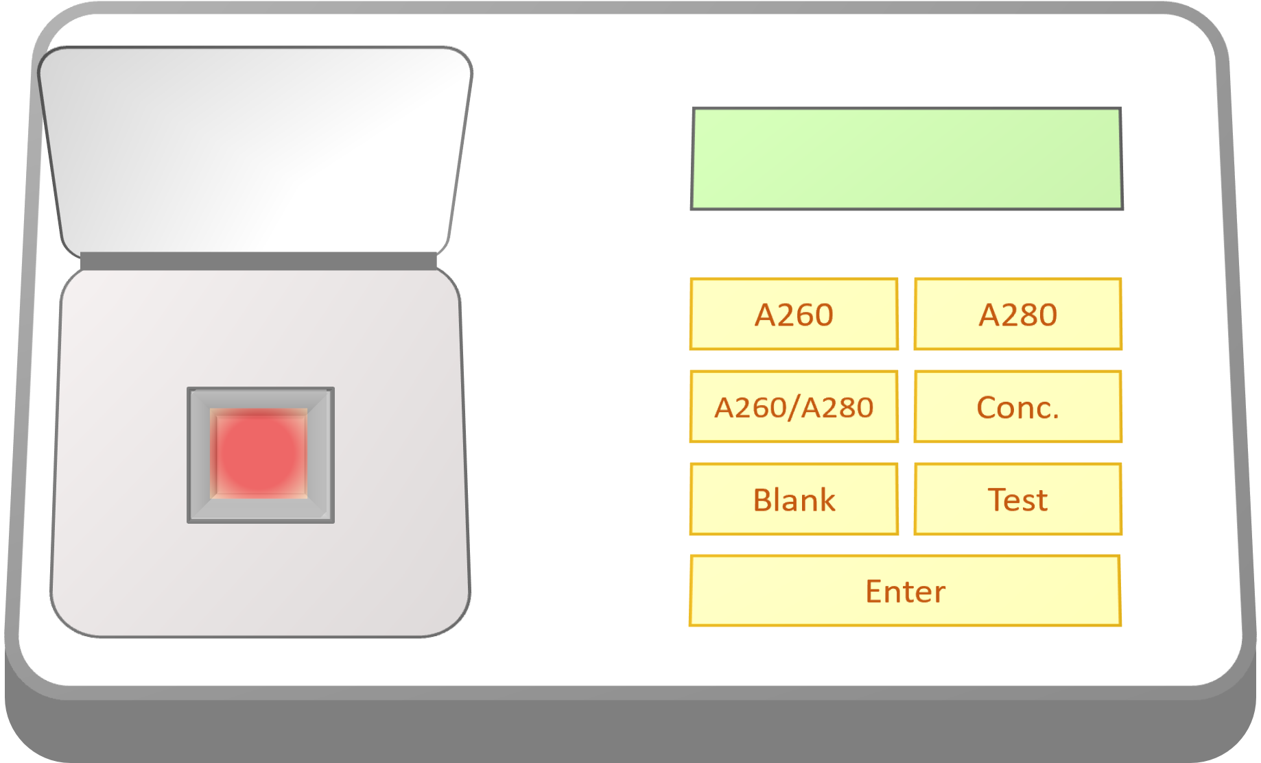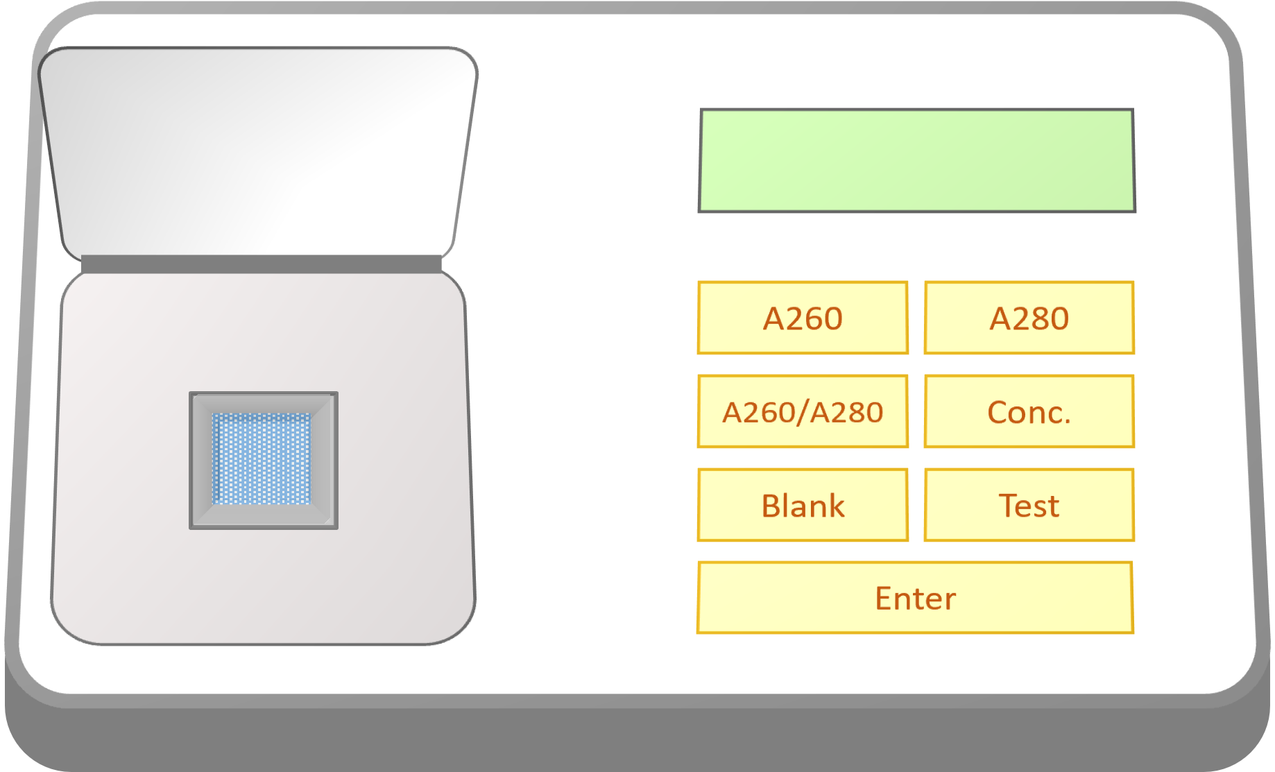In this step, we zero the blank sample to correct the baseline absorbance from the solvent, ensuring accurate sample absorbance quantification. For this click on the lid of the spectrophotometer to open it.