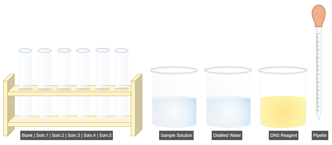 - Add DNS reagent to all test tubes as per the table using the Run function.