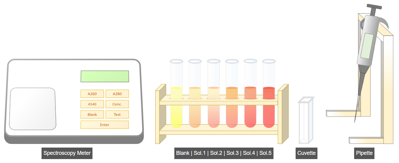 - Add distilled water to the blank test tube as specified in the table.