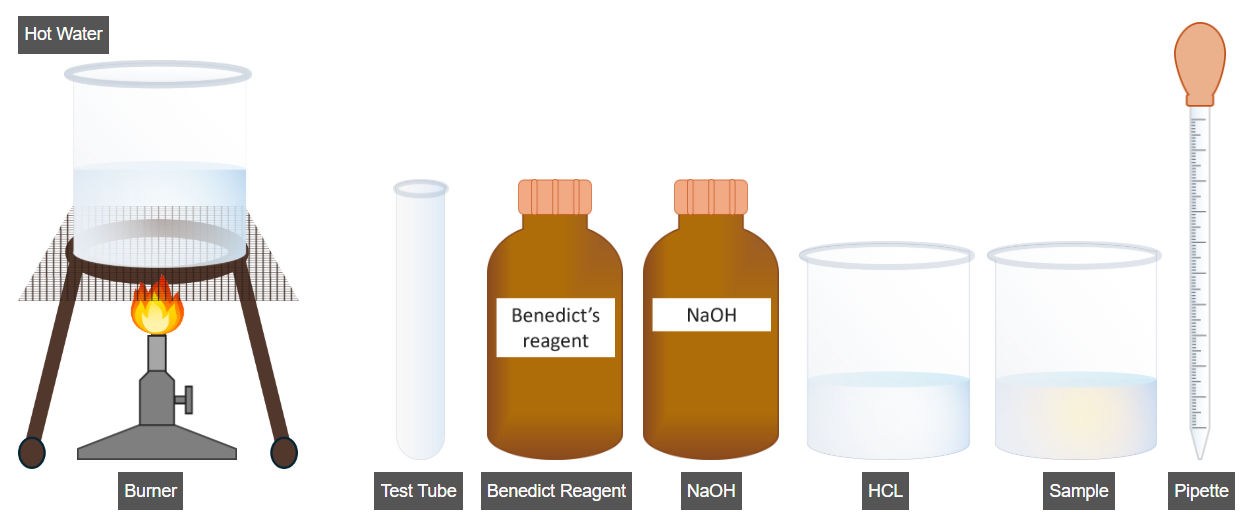 - Add 2 mL of Benedict’s reagent to the test tube.