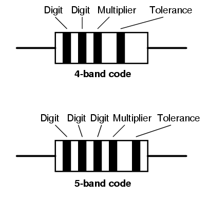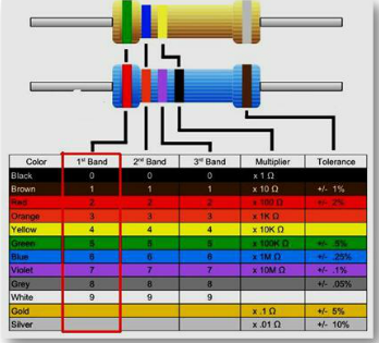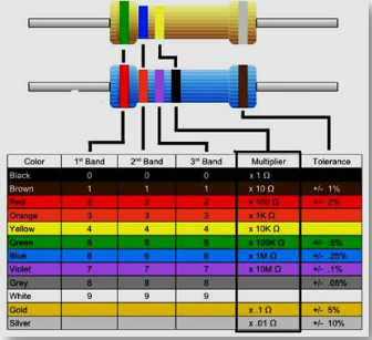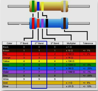 - If your resistor has four color bands ,turn the resistor so that the gold or silver band is on right hand side or the end with more bands should point left.