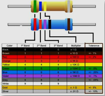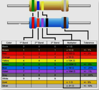 | Color | Digit | Multiplier | Tolerence% | Color Band |