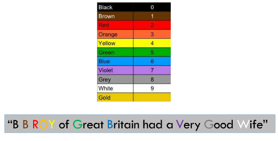 | Brown | 1 | $$10^1\quad Ω$$ | 1 | |