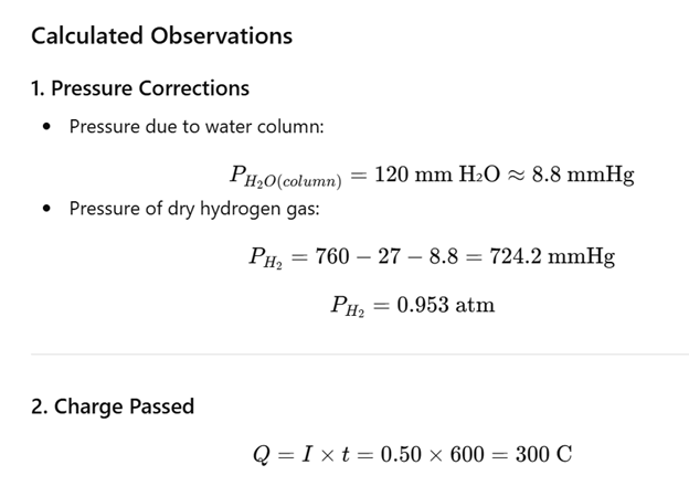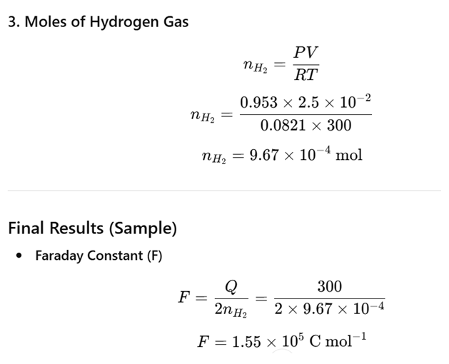 | Volume of H2 collected, V | 25.0 mL = 2.5 × 10-5 m3 |