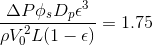 At low Reynolds numbers, the quantity 1.75 of Eq.(1) is negligible in comparison