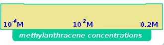 Prepare three solutions with following concentrations of 9-methylanthracene in spectroscopic grade benzene: (i) 10-4M; (ii) 10-2M and (iii) 0.2 M. Here the solutions are shown on the concentration selection bar.