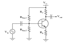 Determine what would happen to the voltage gain of a common-emitter transistor amplifier circuit. If the resistance Rbias2 is changed, then Av