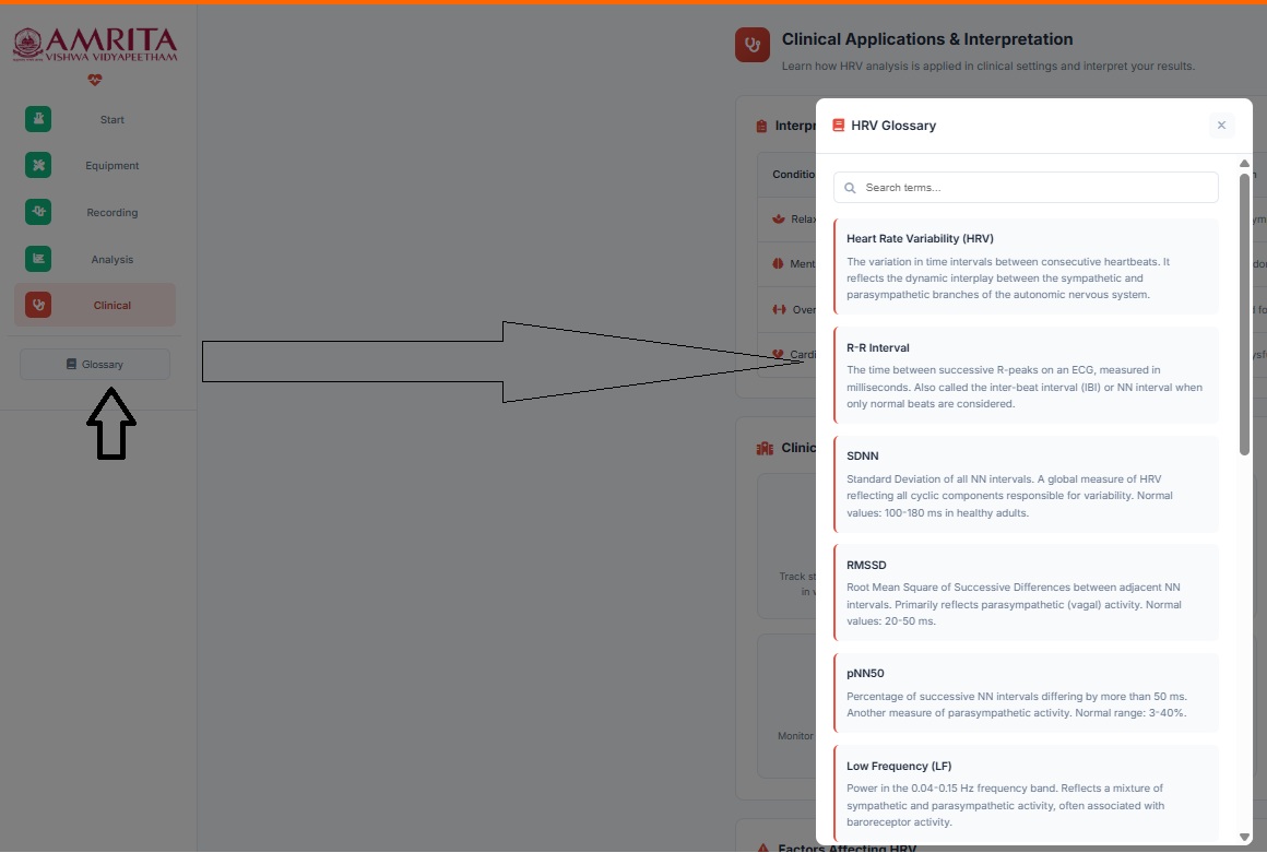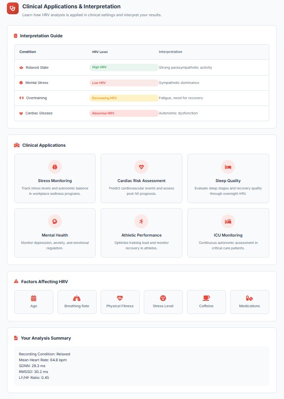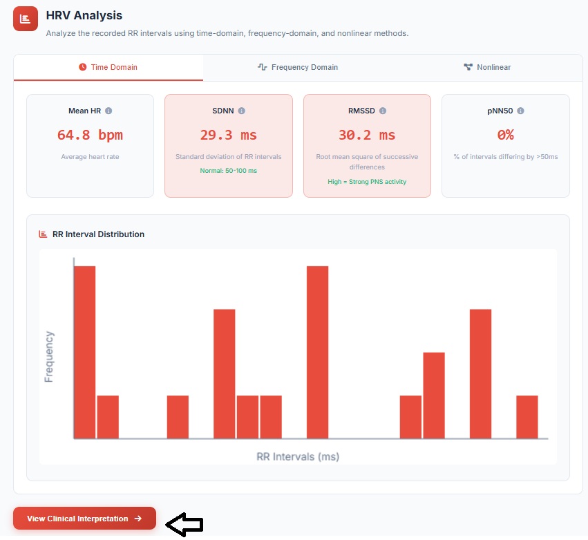 - To understand the clinical implications of the HRV analysis, users can click on View clinical interpretation button.