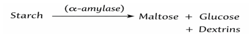 This reaction increases reducing sugar content because both glucose and fructose are reducing sugars. Monitoring this reaction is important where sweetness, fermentability, and stability of syrups are critical. - Hydrolysis of Starch (Enzymatic Action)