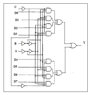 Y = C’. [B’.A’.D0 + B’.A.D1 + B.A’.D2 + B.A.D3] C. [B’.A’.D4 + B’.A.D5 + B.A’.D6 + B.A.D7 ]