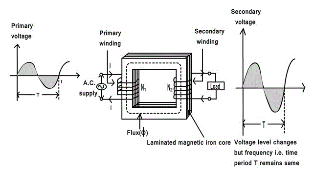 Key point: The transformer is a static piece of apparatus by means of which an electrical power is transferred from one alternating current circuit to another with the desired change in voltage and current without any change in frequency.