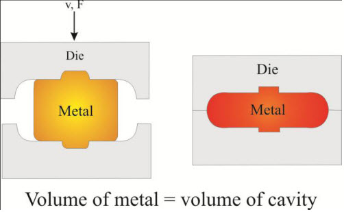 1. By plastic deformation processes in which the volume and mass of metal are conserved and the metal is displaced from one location to another.
