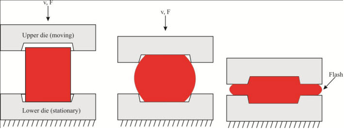 3. squeezed in closed impression dies to produce the desired shape by compelling the metal flow in to multi-directions.