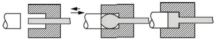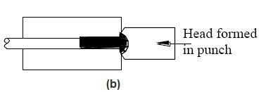 (ii) Apply force through the punch. At the end of the stroke, head is formed as shown in figure 43(b).