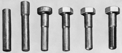 Example 2: Bolt is to be manufactured from a workpiece shown in figure-44 by forging operation. Explain the different stages involved in manufacturing.