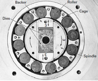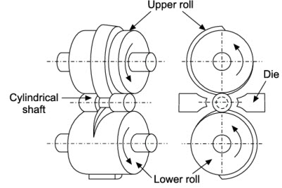 Equipment: rolling mill that has two semi - cylindrical rolls that are slightly eccentric to the axis of rotation. Each roll has a series of shaped grooves on it.