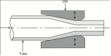 In tube swaging, the tube thickness and / or internal diameter of tube can be controlled with the use of internal mandrels. Also internally shaped tubes can be swaged by using shaped mandrels. Figure 35 shows the process.