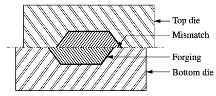 (iv) Mismatched forgings due to faults in two halves of the die in working. Mismatch is caused by mis-alignment between the top and bottom dies.
