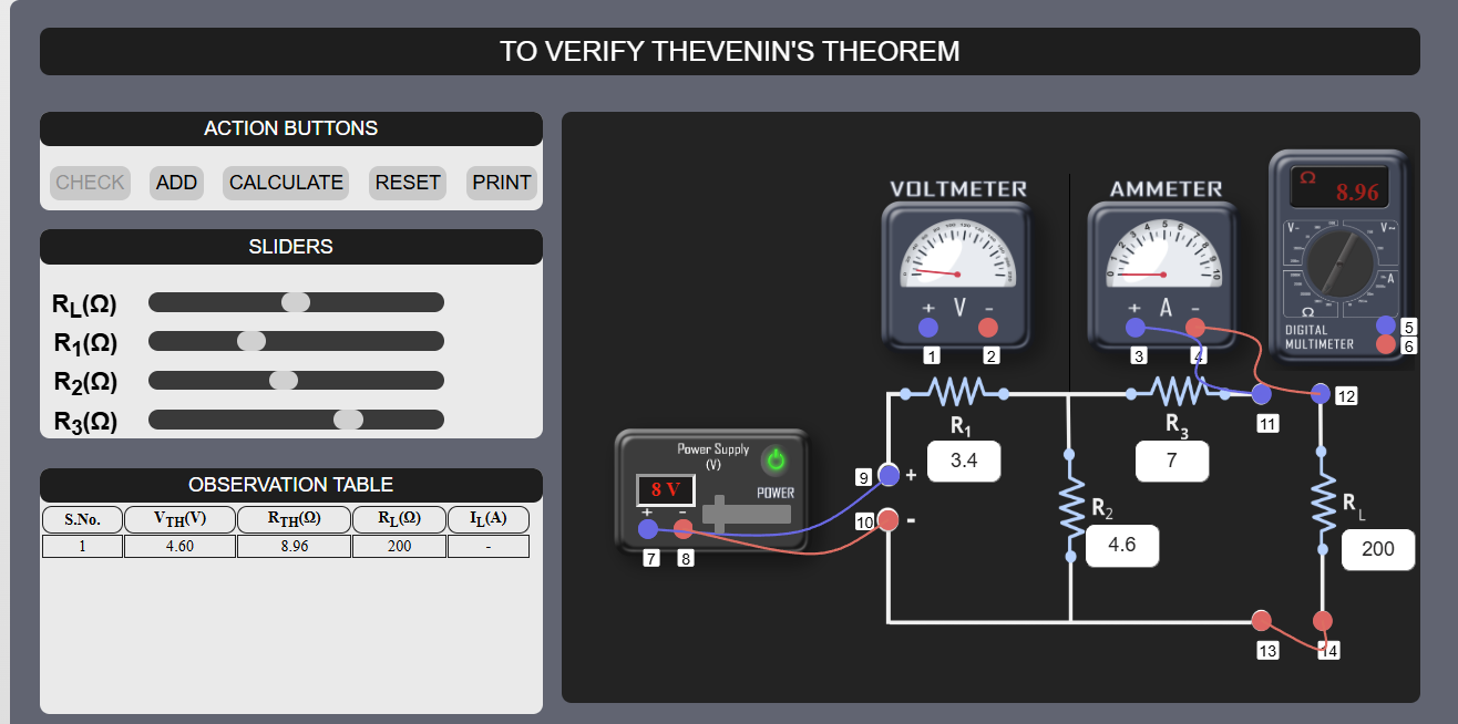 Case 1: (a) To measure RTH short circuit the terminals for power supply (9-10) and connect Multimeter with circuit (5-11 and 6-13).