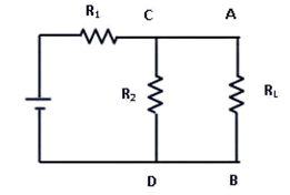 When viewed from terminals A and B, the circuit consists of two parallel paths one containing R2 and another path with r and R1. The equivalent resistance of the circuit as viewed from terminals is given as
