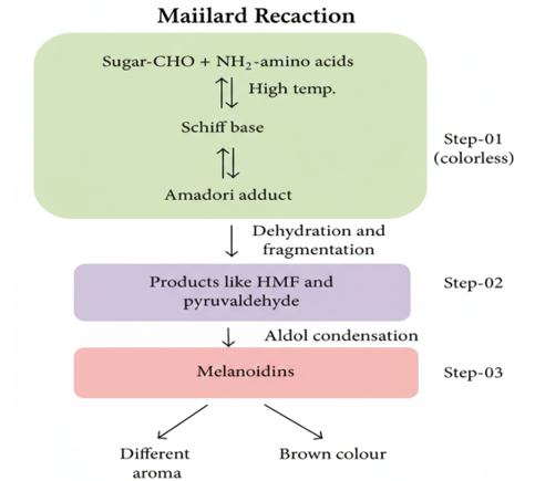While Maillard browning contributes desirable flavors and colors in frying, roasting, and baking, excessive NEB during processing or storage may result in undesirable color changes, off-flavors, nutrient loss, and formation of compounds such as HMF that may impact food safety.