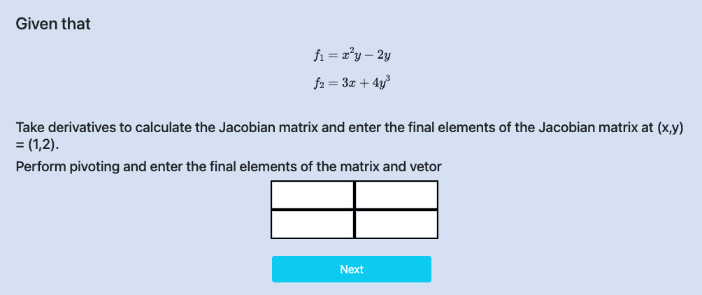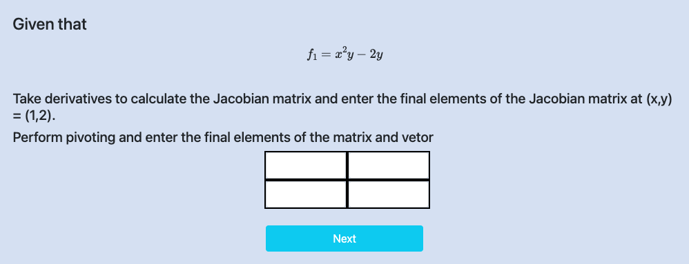 Step II: Calculate and Enter Jacobian Matrix values.