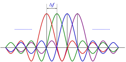 The minimum possible such that the modulated subcarrier remains orthogonal is . Therefore, the total bandwidth of the transmitted signal becomes . Utilizing the orthogonality of the subcarriers, the data stream can be demodulated independently, which in turn helps in removing the ISI. Note that this ISI removal is attributed to the fact that symbol duration over each sub-carrier becomes significantly larger than the delay spread.