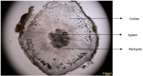 A fresh root of a plant (Tap Root) is chosen. Click on the blade to cut a small portion of root traversly.