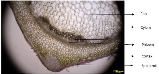 A fresh stem of a plant (Amaranthus) is chosen. Click on the blade to cut a small portion of stem.