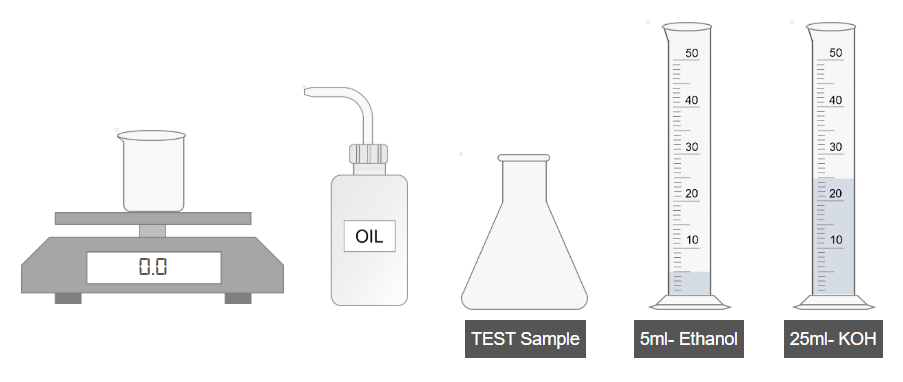 - Weigh 1 g of oil and transfer it to a beaker.