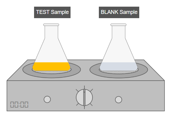 - Attach a reflux condenser to both the test and blank flasks.