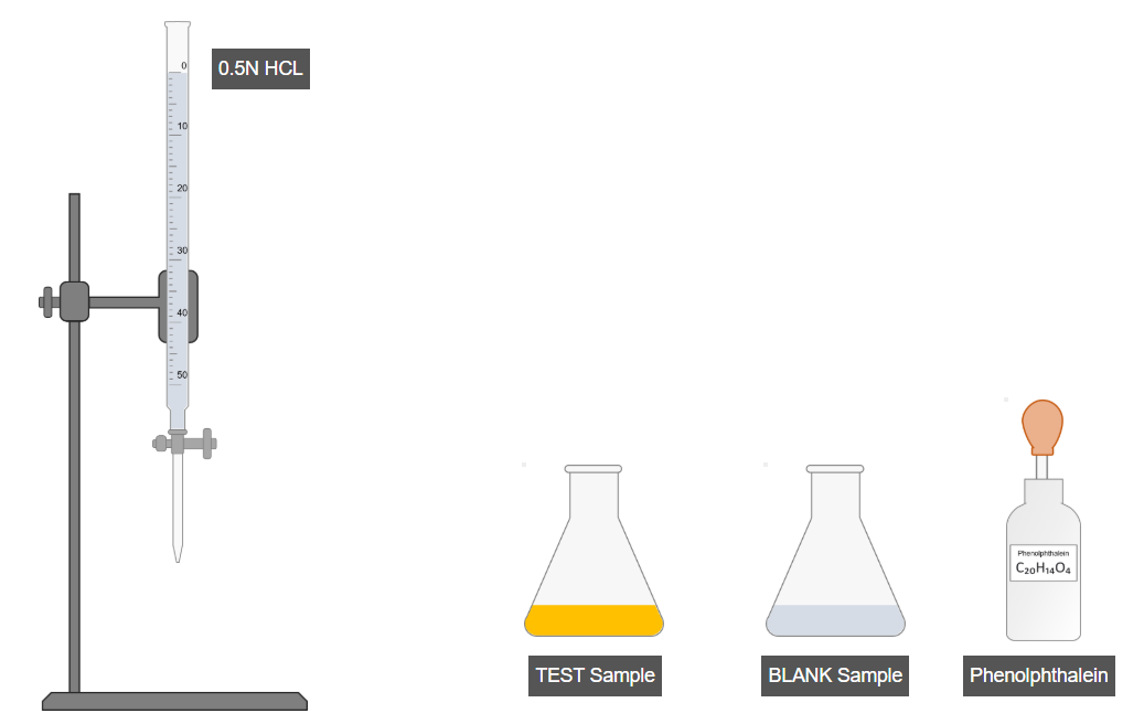 - Add a few drops of phenolphthalein indicator to the test sample and shake.