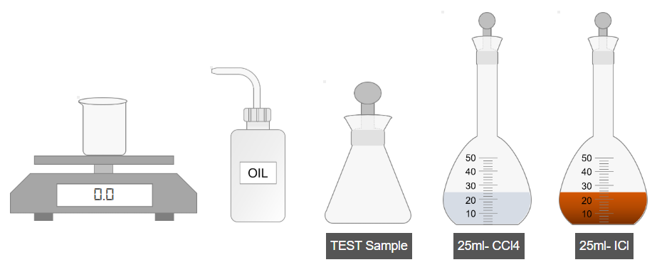 - Weigh 3 g of oil and transfer it to an iodine flask.