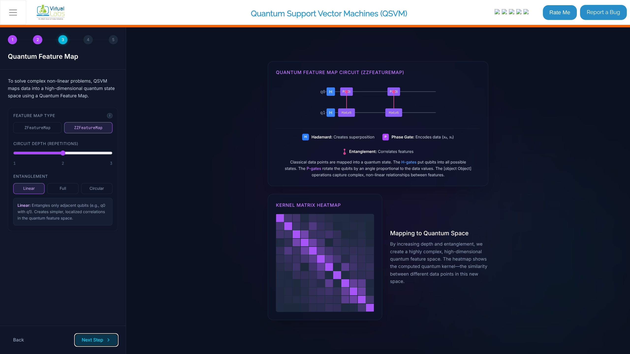ZZFeatureMap. - Circuit Depth (Repetitions): Set the slider (e.g., 2).