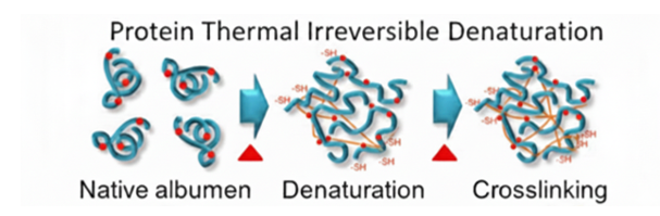 The following figure represents how the egg albumen turns from liquid to solid upon heating due to protein denaturation