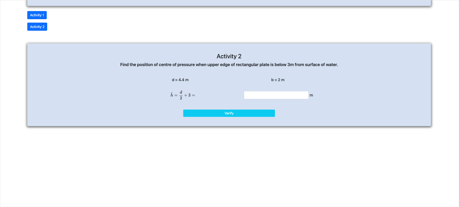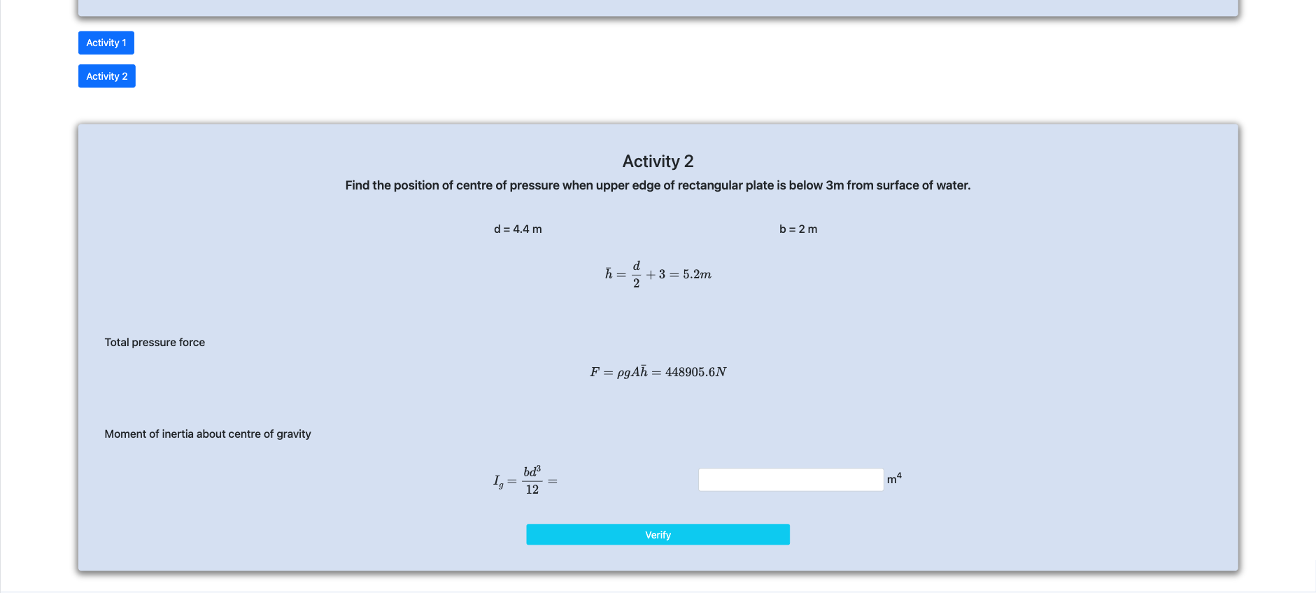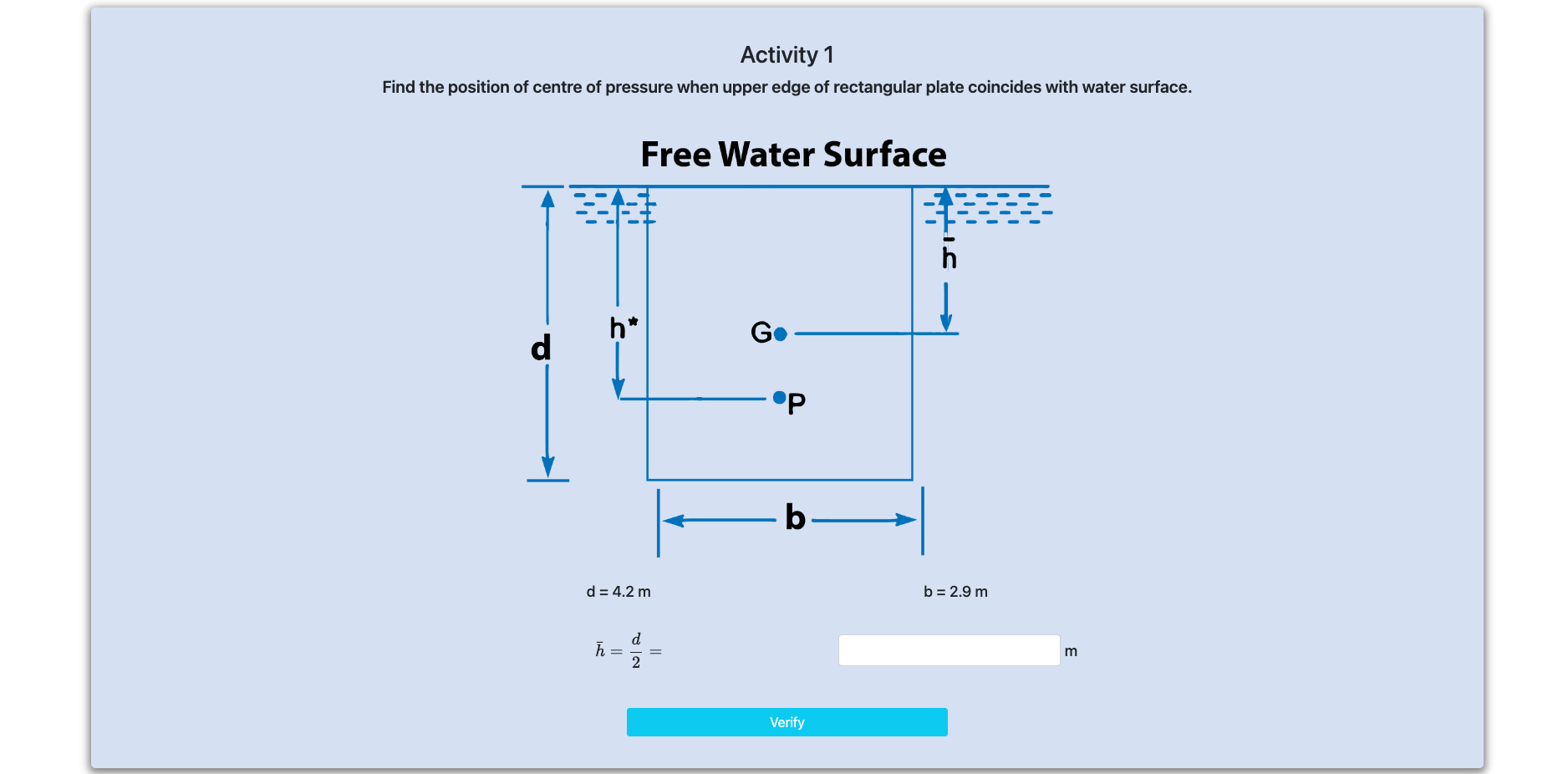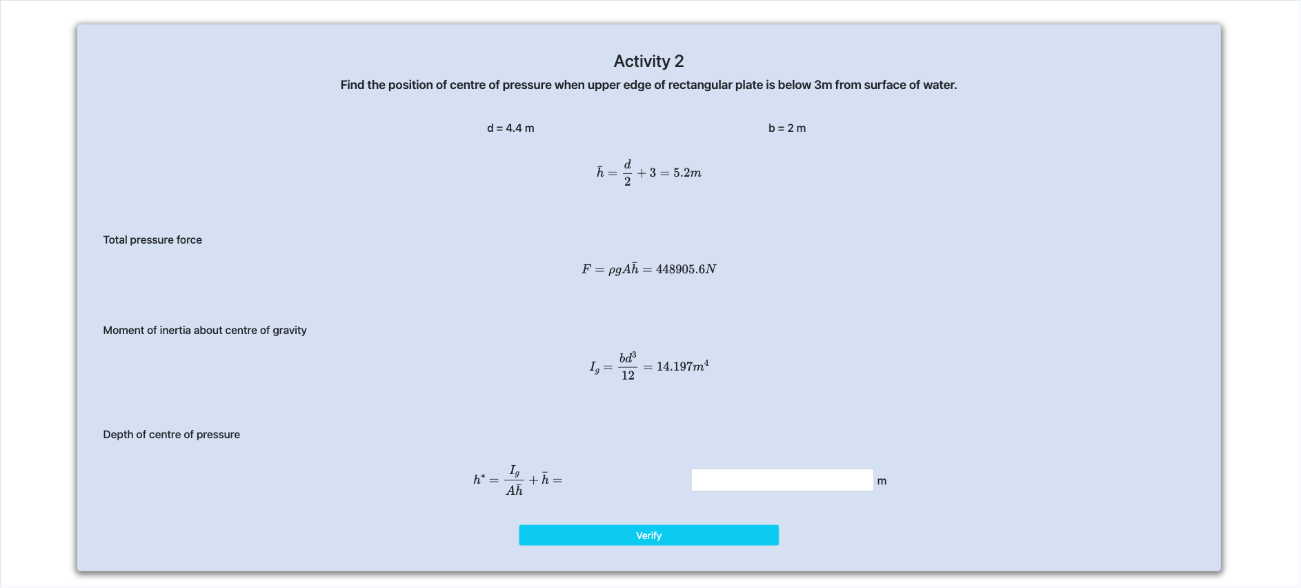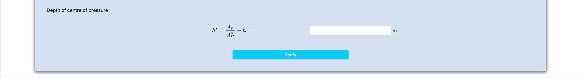 Step 5 : Calculate depth of centre of pressure