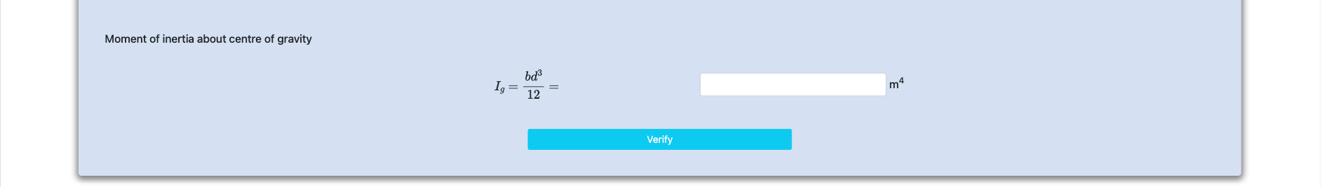 Step 4 : Calculate moment of inertia about center of gravity