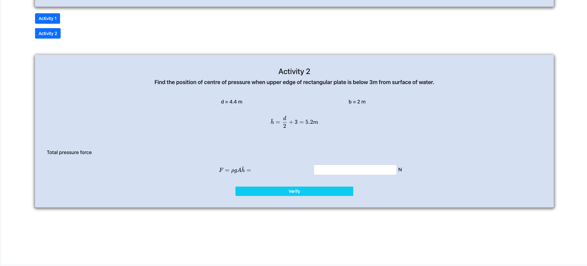 Step 3 : Calculate total pressure force