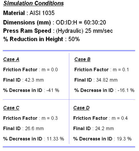 A ring test simulation will be preformed for two different friction shear factors, one material, one press setup. The simulation is