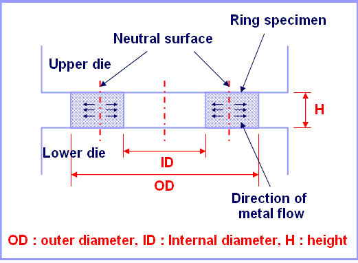 Ring compression test has been widely used to evaluate friction conditions in metal forming processes.