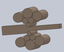 Given below is the example of a four stand continuous mill or tandem mill. Typical arrangement of rollers for rolling mills.